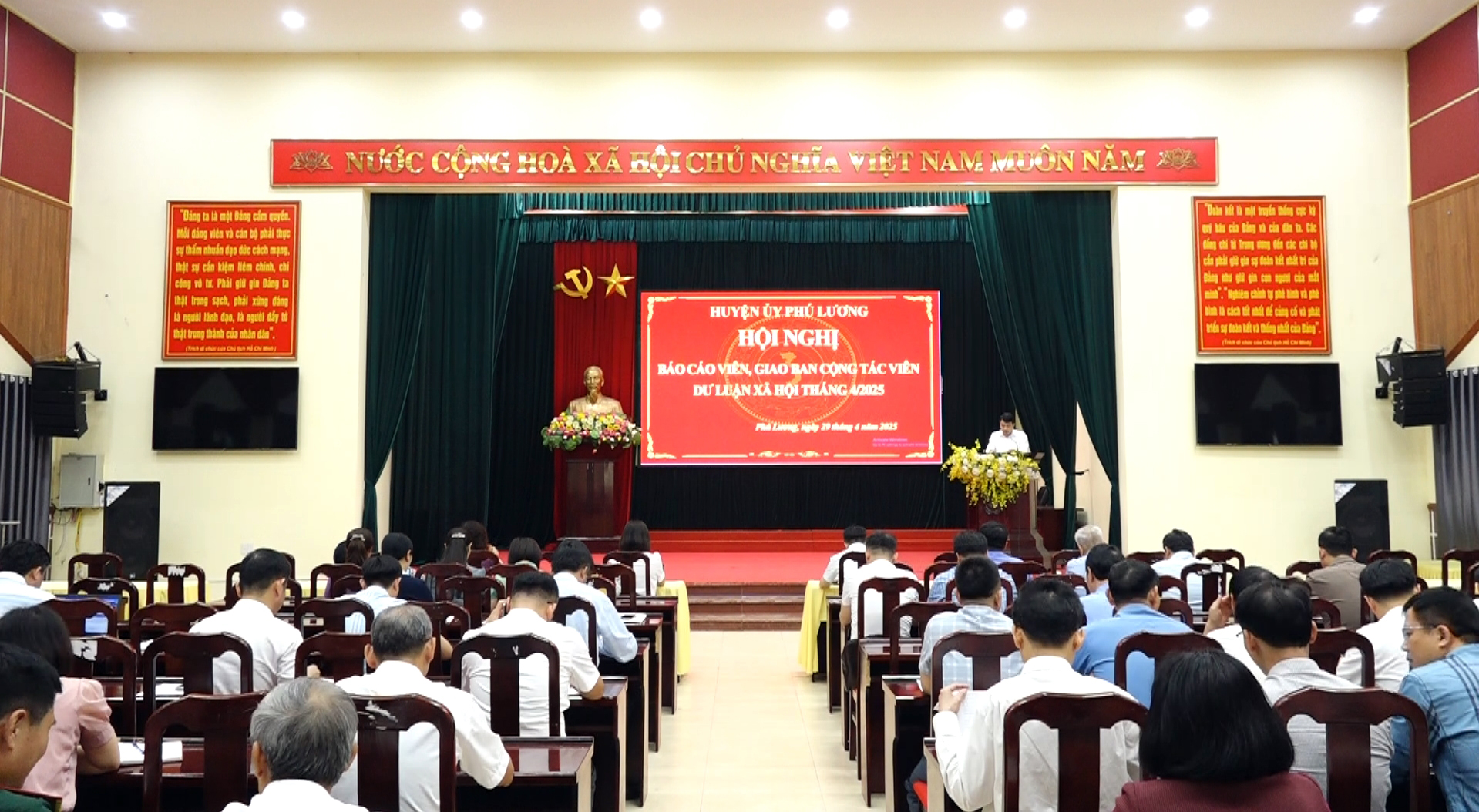 Sáng ngày 29/4/2025, Huyện uỷ Phú Lương đã tổ chức Hội nghị báo cáo viên, cộng tác viên dư luận tháng 4 năm 2025. Dự hội nghị có đồng chí Hà Thị Hường, Uỷ viên BTV Huyện uỷ, Trưởng Ban Tuyên giáo và Dân vận, Giám đốc Trung tâm Chính trị huyện.