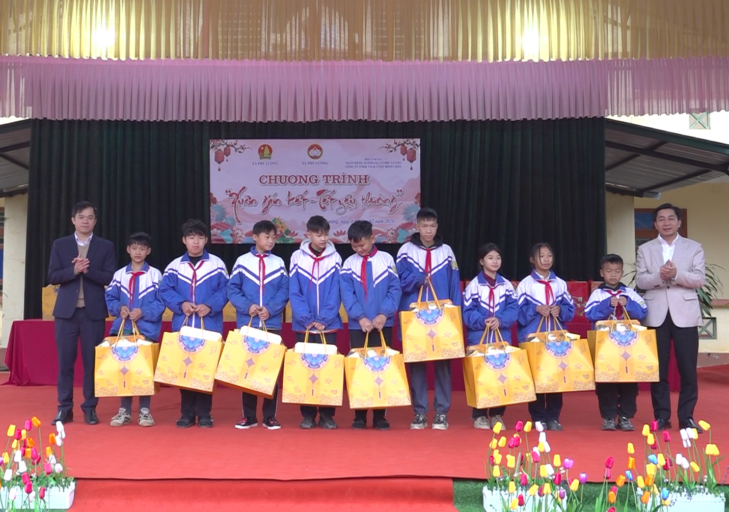 Với tinh thần sẻ chia và mong muốn mang đến một mùa Xuân ấm áp hơn, tại Chương trình, lãnh đạo Đảng ủy, HĐND, UBND, Ủy ban MTTQ Việt Nam xã Phú Lương và Ngân hàng Agribank Chi nhánh Phú Lương đã tặng 18 suất quà cho các em học sinh vượt khó học tập tốt, rèn luyện tốt của nhà trường, mỗi suất quà trị giá 1 triệu đồng.